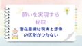 ちなみに潜在意識は本人が自覚していない意識で反対に本人が自覚している意識を顕在意識と言われます。